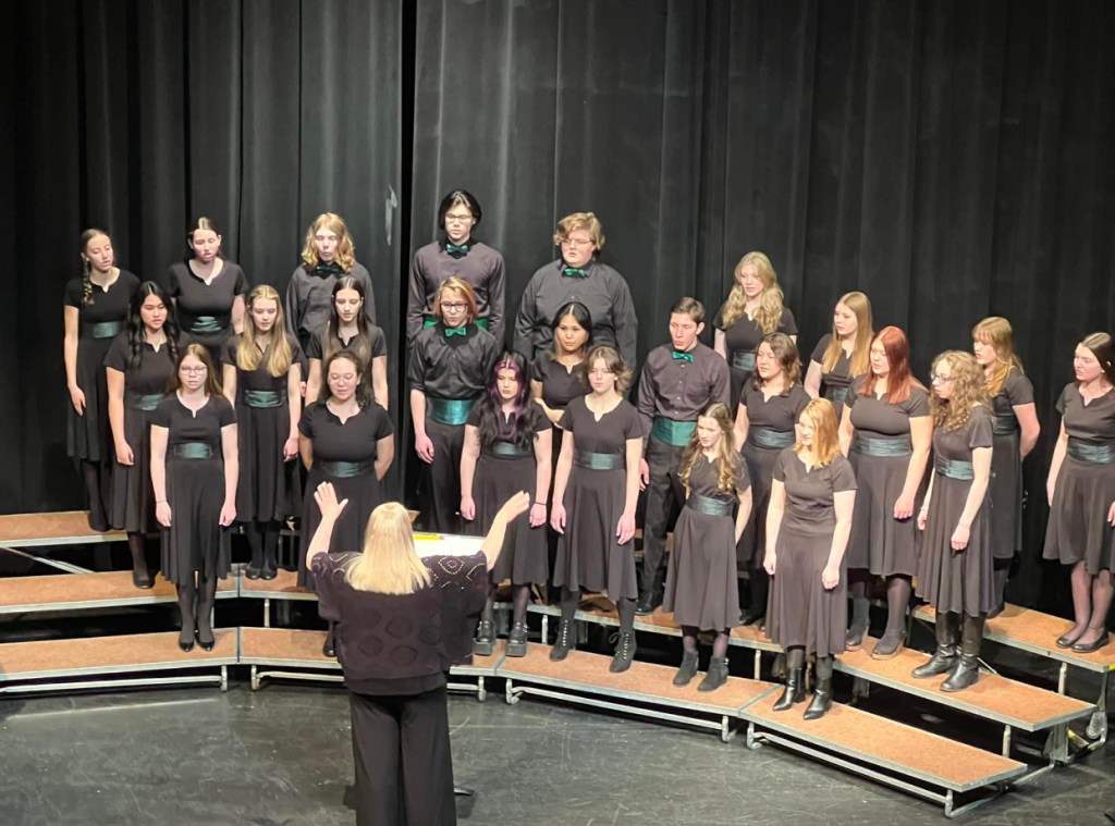An entry-level choir for all voice types. Auditions are not necessary to join concert choir. This choir focuses on introducing students to theory, concert etiquette, and music-reading skills.